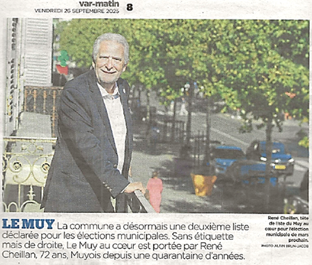 René CHEILLAN se lance dans la course à la Mairie du Muy « La commune du Muy a désormais une deuxième liste déclarée pour les élections[…]