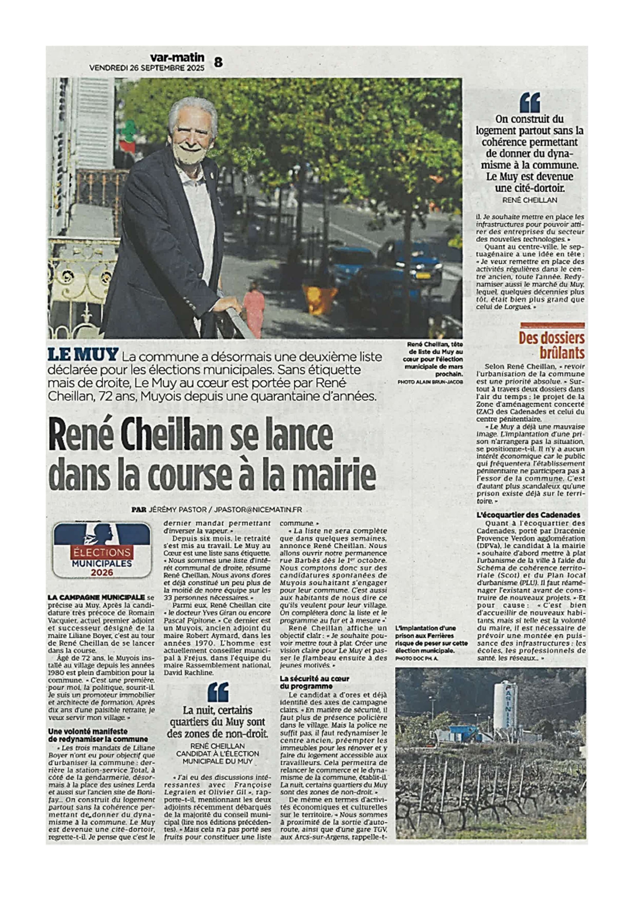 René CHEILLAN se lance dans la course à la Mairie du Muy